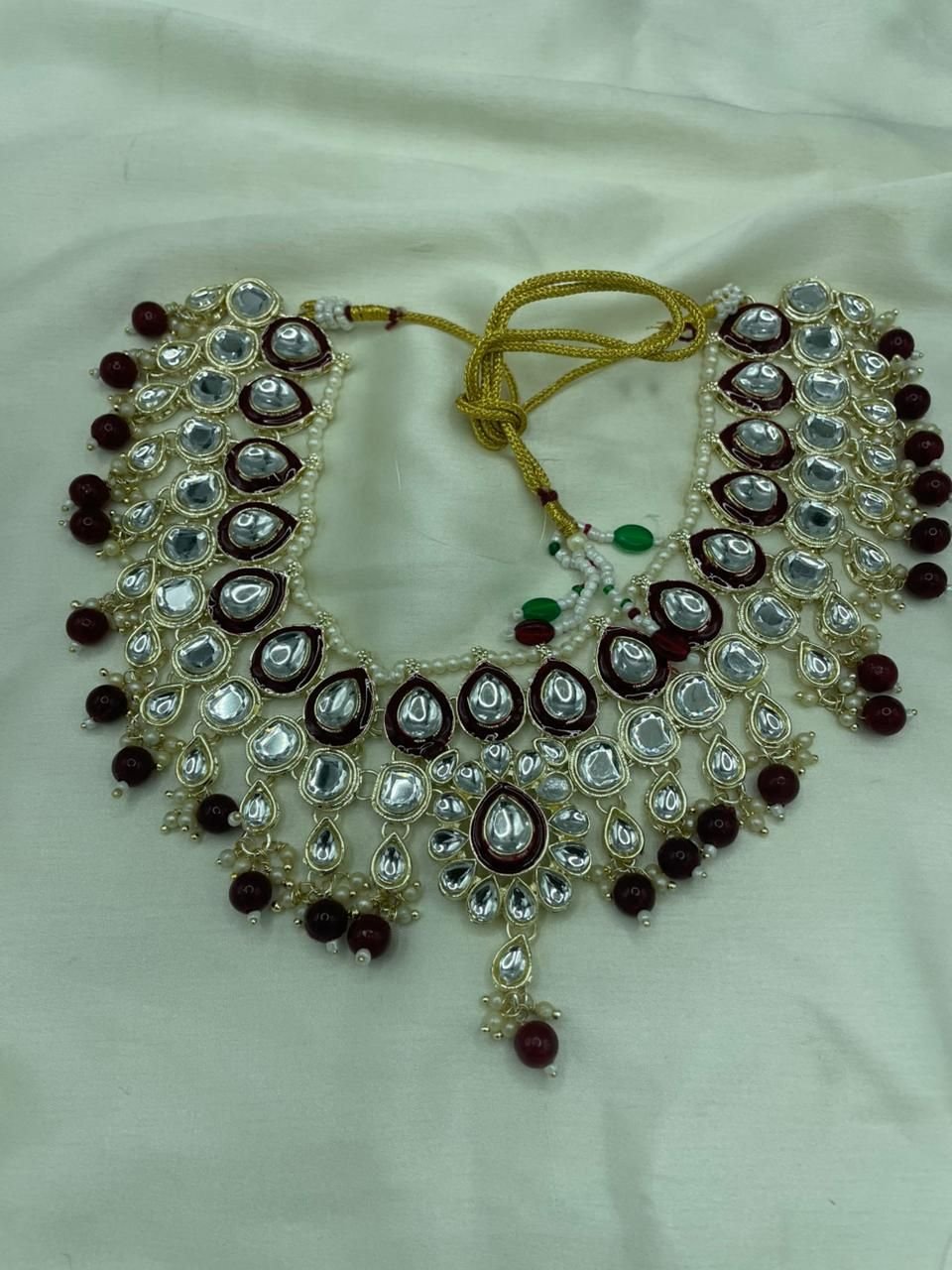 Introduce a touch of bridal elegance and traditional charm with this heavy-look Kundan jewelry set. The rich Maroon (Deep Red) color makes it an excellent choice for wedding functions, pre-wedding ceremonies, or any major festive celebration.