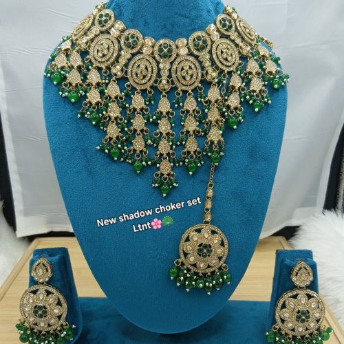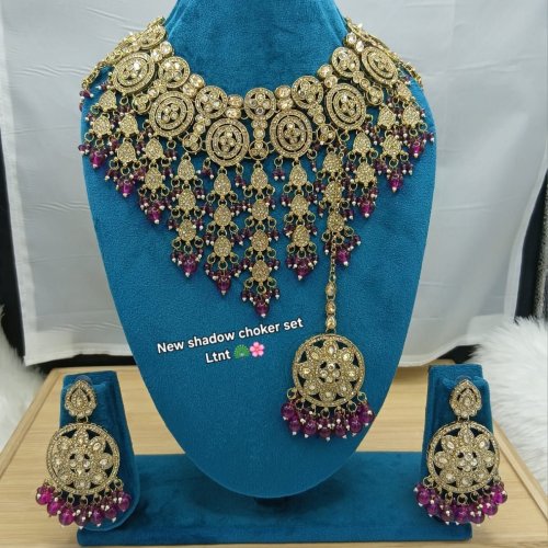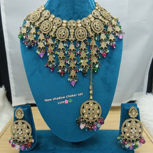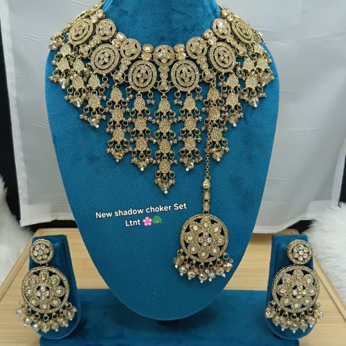 Premium Gold-Plated Bridal Shadow Choker Set with Earrings & Maang Tikka