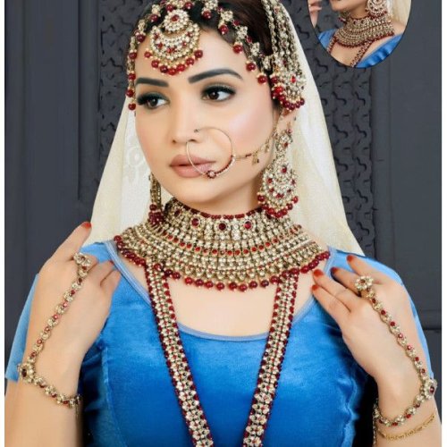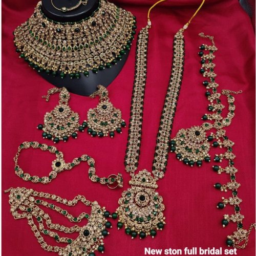 Gold-Toned Stone Studded Full Bridal Jewellery Set with Choker, Long Necklace, Earrings, Maang Tikka
